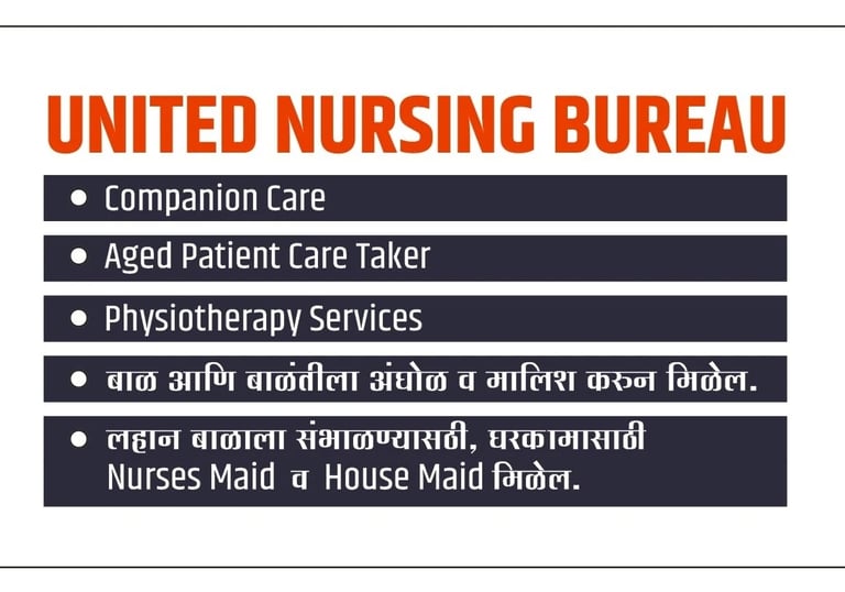 At United Nursing Bureau, we believe that quality healthcare begins at home—with compassion, dignity, and expertise at every step. We are a trusted home nursing agency committed to providing personalized care for every stage of life. From skilled home nursing and physiotherapy to specialized services for newborns, new mothers, the elderly, and pregnant women, our team of certified caregivers and medical professionals is dedicated to delivering comfort, support, and peace of mind to families across the region. Whether it’s round-the-clock medical attention or gentle, nurturing daily care, we’re here to serve with heart and professionalism.